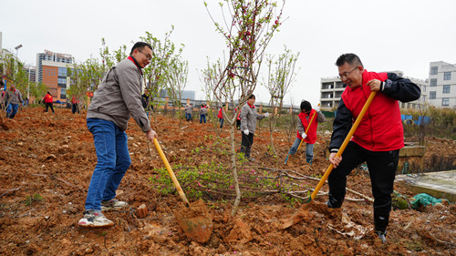 活動(dòng)現(xiàn)場(chǎng),黨員們熱情高漲。 大家分工協(xié)作,對(duì)土地進(jìn)行平整美化, 清理雜草碎石,翻松土壤,揮鍬鏟土,扶苗填坑、培土,每一個(gè)環(huán)節(jié)都一絲不茍,現(xiàn)場(chǎng)呈現(xiàn)出一派熱火朝天的勞動(dòng)景象。經(jīng)過(guò)一番辛勤勞動(dòng), 一棵棵新栽種的樹苗迎風(fēng)挺立,為校園增添了一抹新綠,也種下了春天的希望。